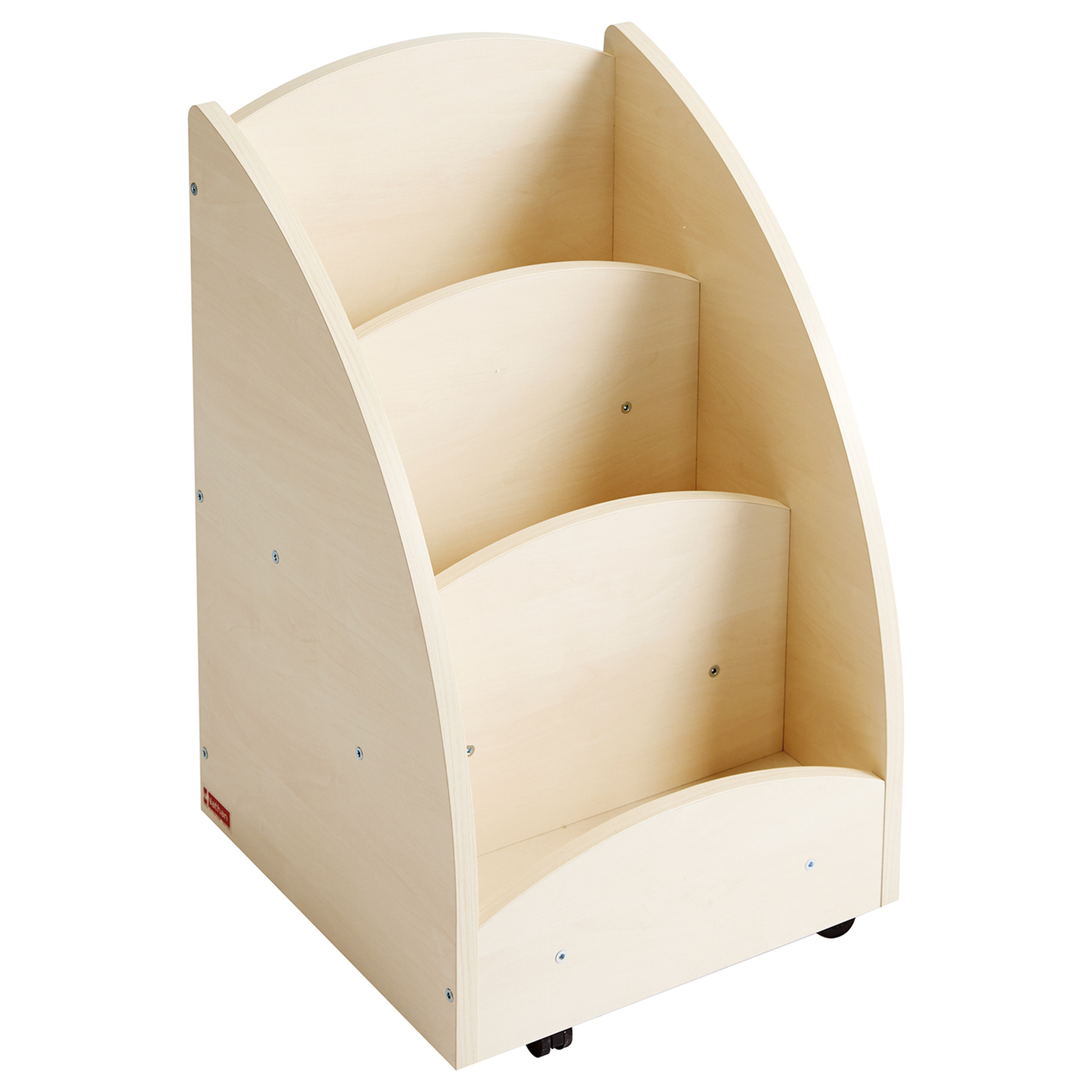 Ce bac à livres présentoir monté sur roulettes (teinte bouleau) comporte 3 compartiments pour présenter et stocker de petites sélections d'ouvrages. En mélaminé bouleau. L/l/H : 40 x 40 x 62 cm. Livré à plat avec 1 notice de montage.
