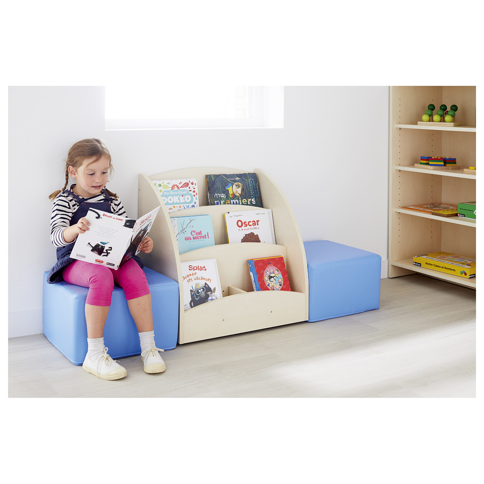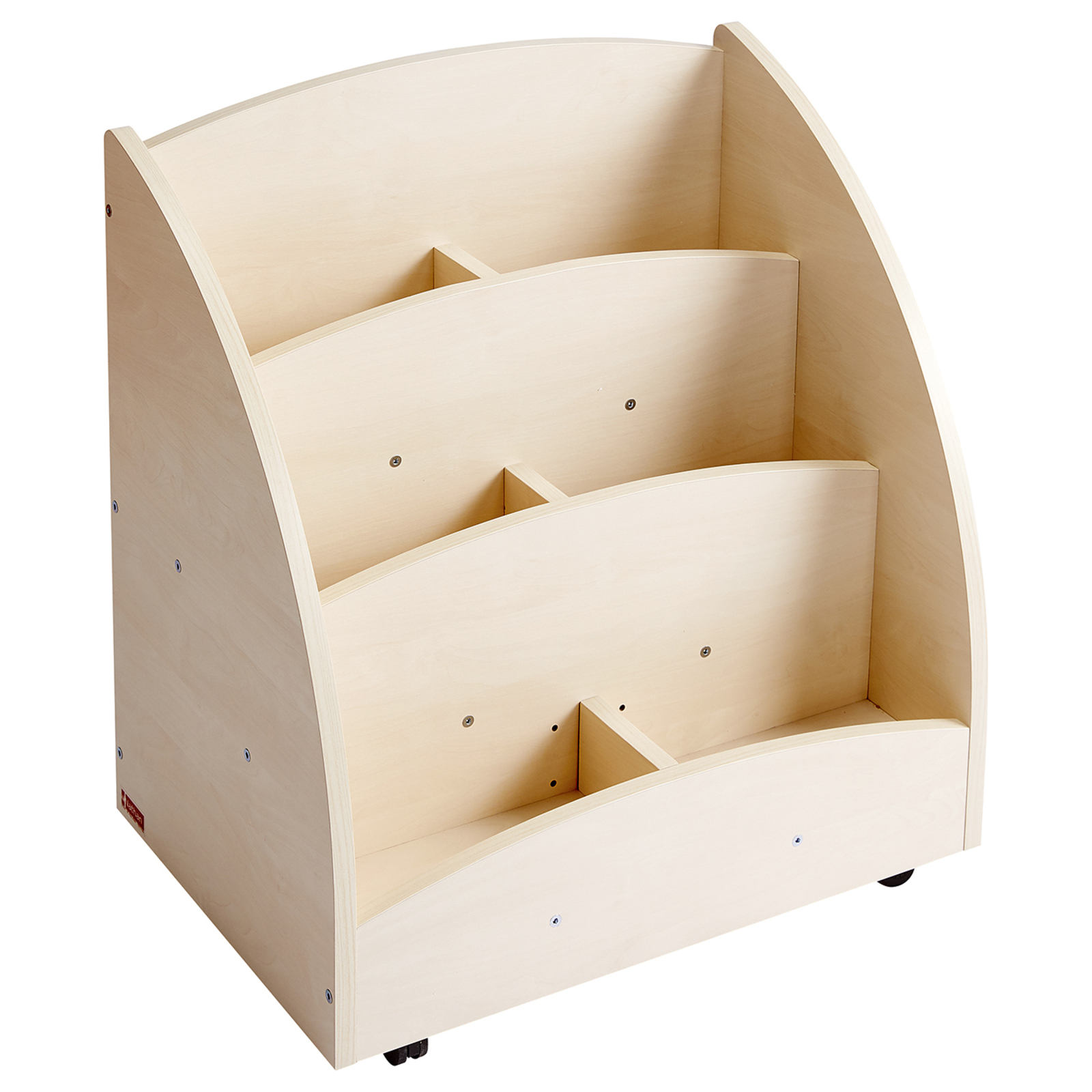 Ce bac à livres présentoir monté sur roulettes (teinte bouleau) comporte 6 compartiments pour présenter et stocker de petites sélections d'ouvrages." "" "Les porte-étiquettes repositionnables permettent d'identifier les livres et les cases sont réglables pour accueillir différents formats. En mélaminé bouleau. L/l/H : 60 x 40 x 62 cm. Livré à plat avec 1 notice de montage.