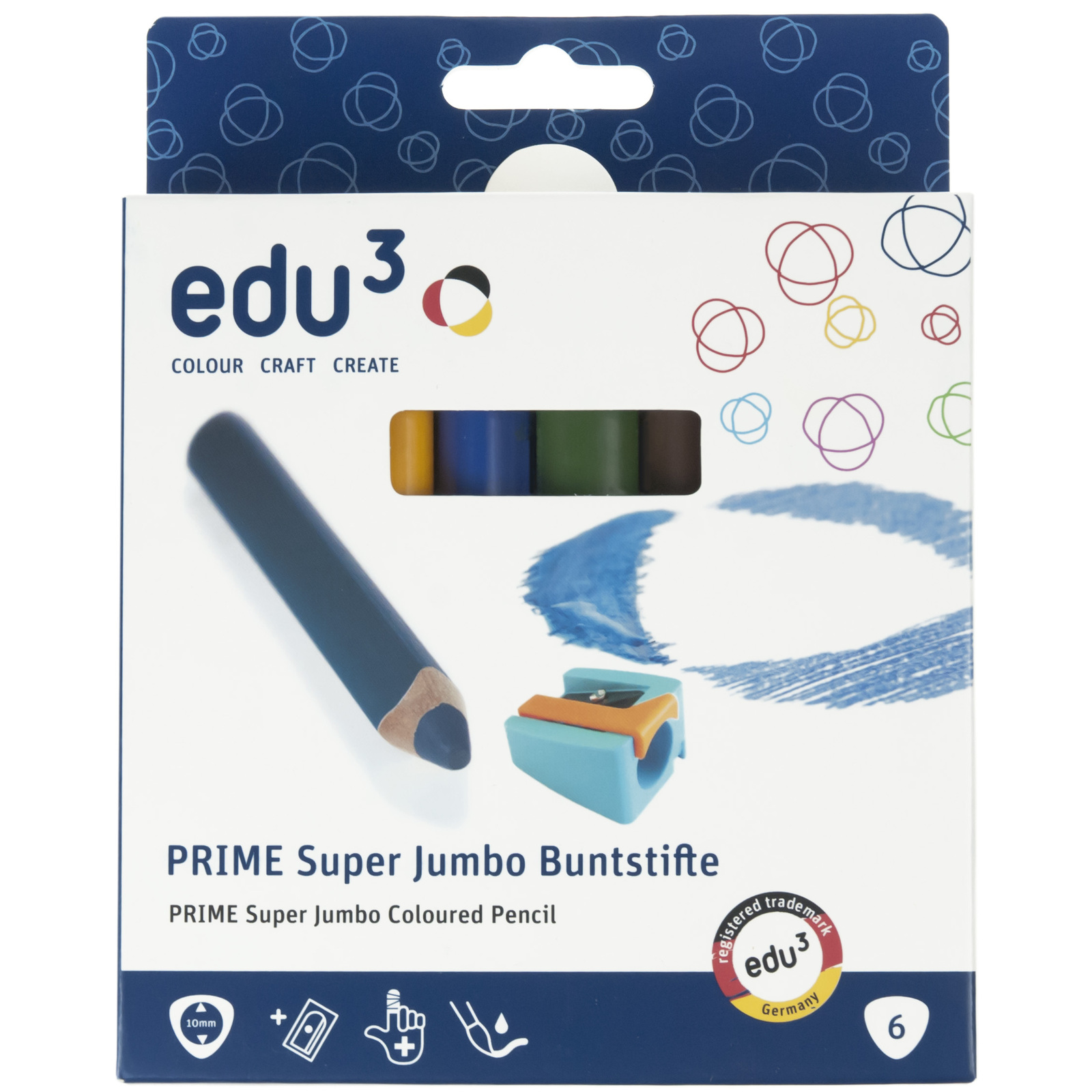 CRAYONS DE COULEUR PRIME SUPER JUMBO TRIANGULAIRES, 6 COULEURS + TAIL