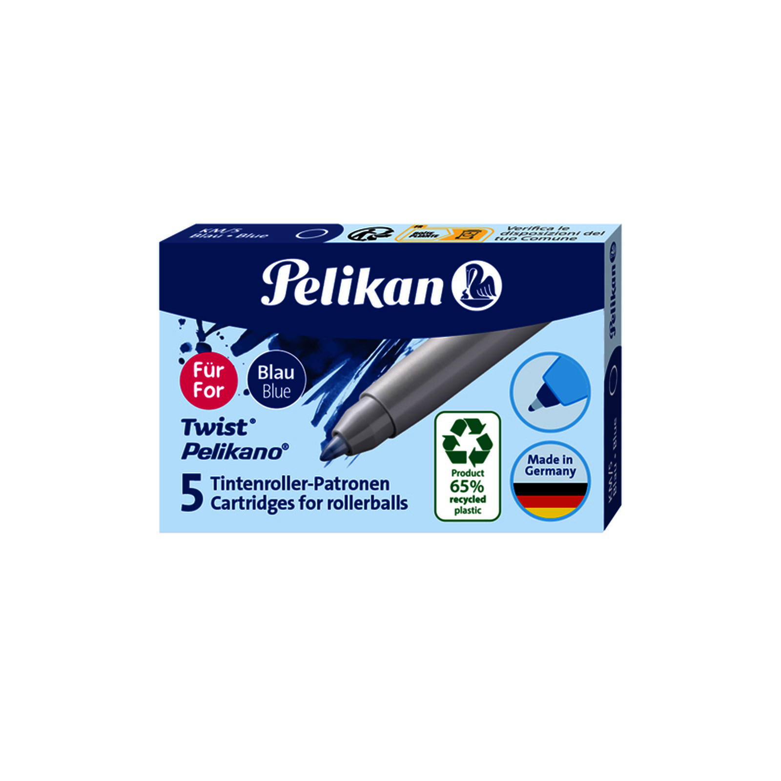 5 CARTOUCHES ROLLER PELIKANO TWIST ECO COLORIS BLEU
