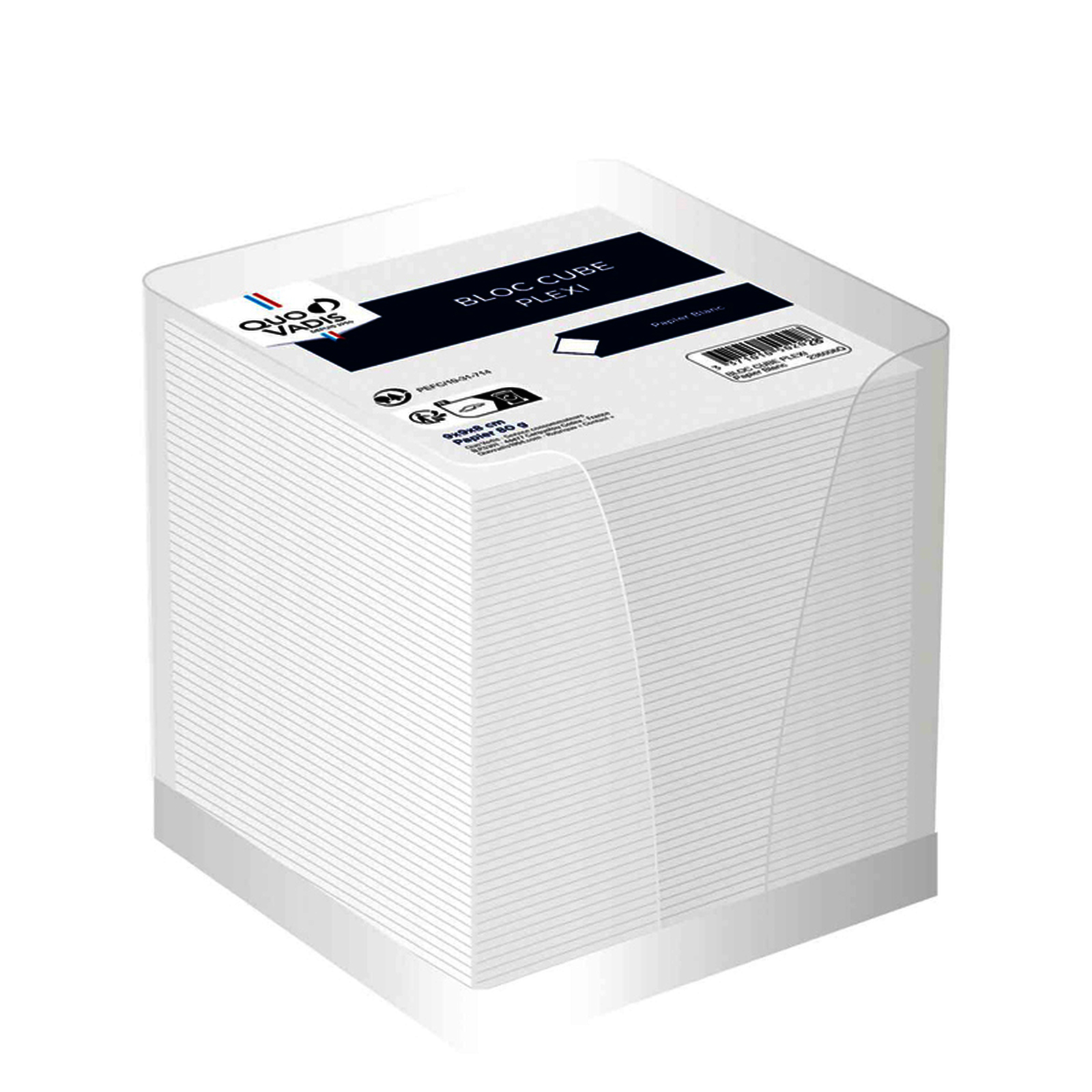 BLOC CUBE PAPIER COLORIS BLANC AVEC PLEXI