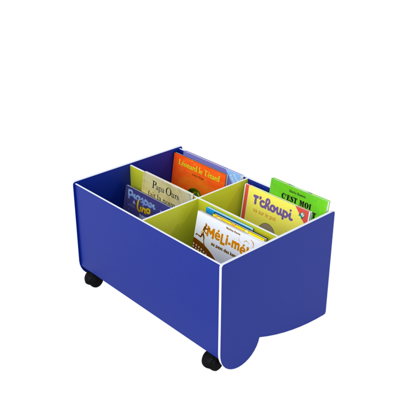 BAC A LIVRES MOBILE PETIT MODELE ANIS/BLEU