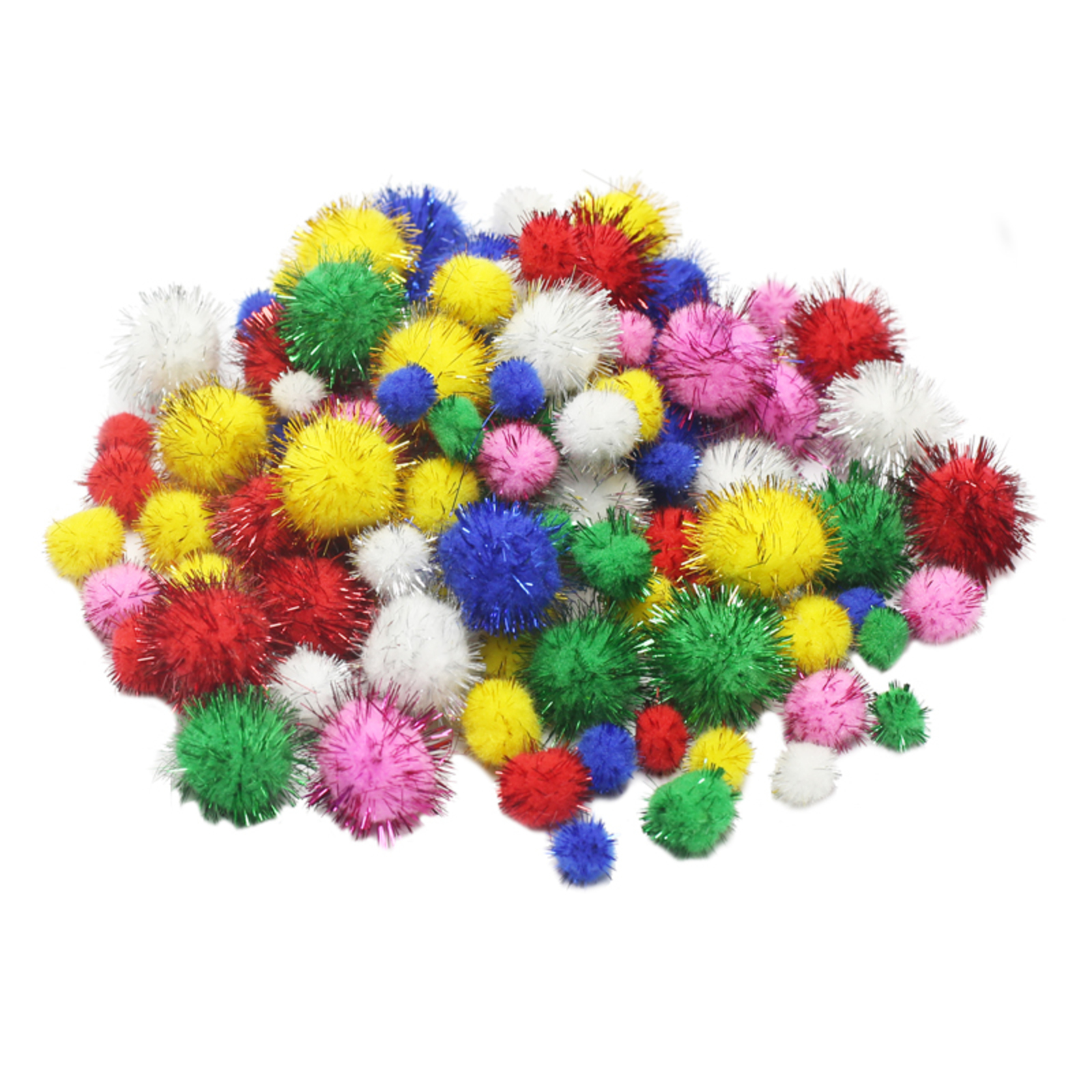 250 POMPONS METALLISES 3 TAILLES ET 6 COLORIS ASSORTIS