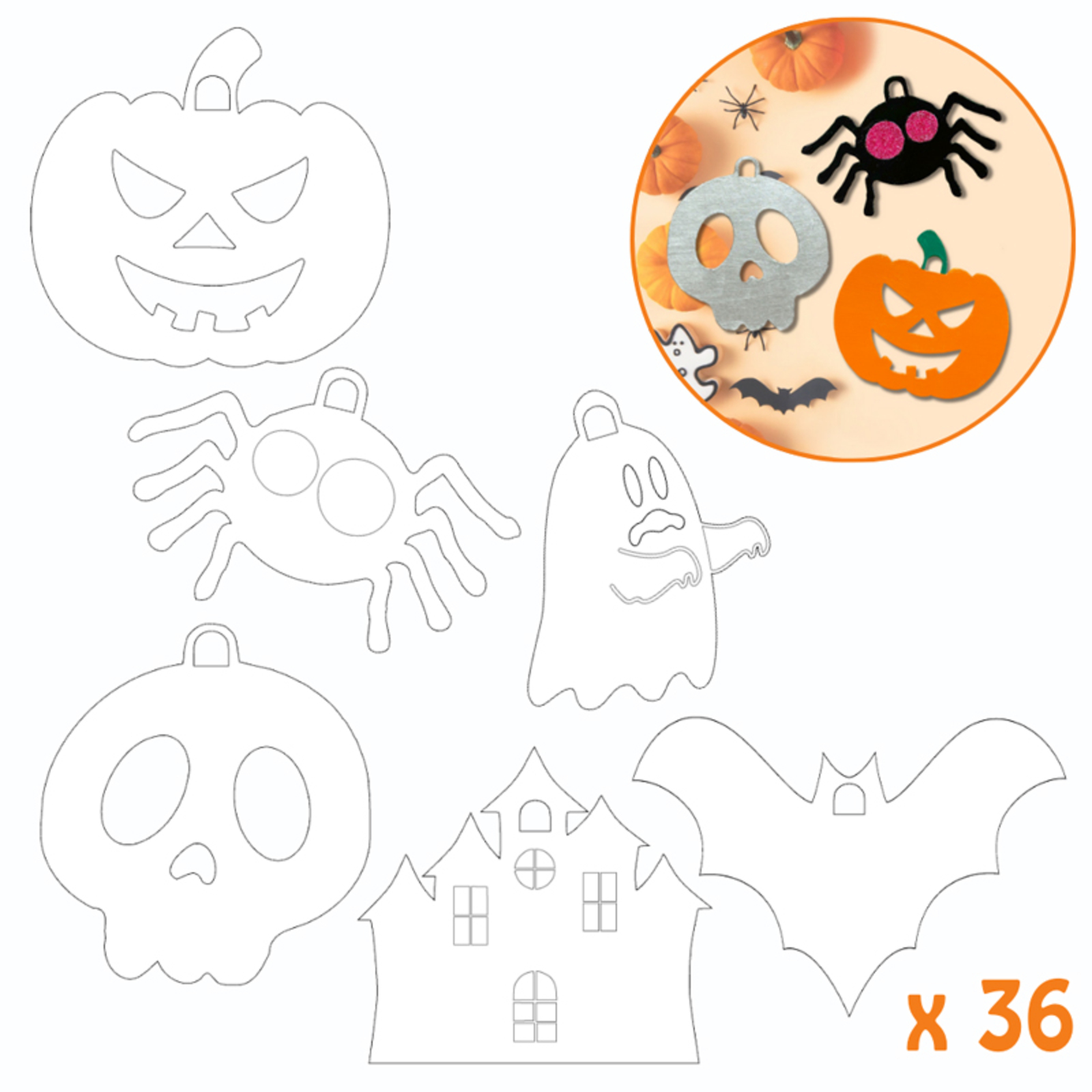 36 SUSPENSIONS CARTON HALLOWEEN 6 FORMES ASSORTIES