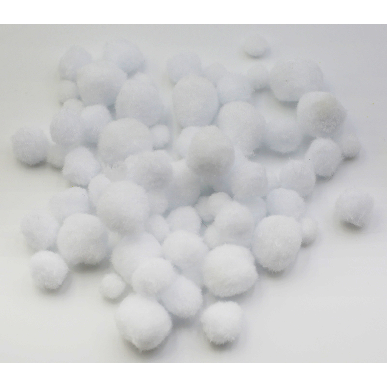 150 POMPONS BLANCS 3 TAILLES ASSORTIES
